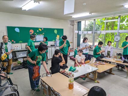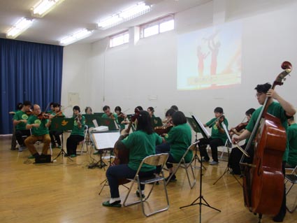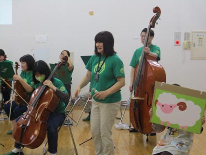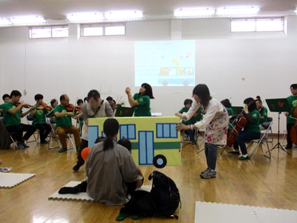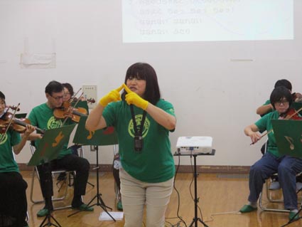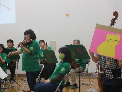 | ゲッゲロメンバーのReikoさんが聴覚支援学校の先生で,手話も使ってMCをしてくれました。聴覚支援学校の先生たちやボランティアの皆さんも協力して盛り上げてくださいました。 | ||