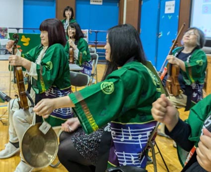 | ここ一発のドラは,事故多発ポイント。今日はどんな事故が発生したのか,周りの人たちの素晴らしい表情から想像してください。 | 子どもたちのハンドベルはとてもきれいな音でした。 | |
