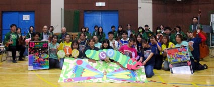 | 今日の出演者せいぞろい。 ダンス部の皆さんとは,来年1月31日に大河原町のえずこホールで開催される「DANDANDANCE & SPORTS 22nd」でも共演させていただく予定です。 |