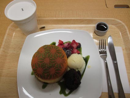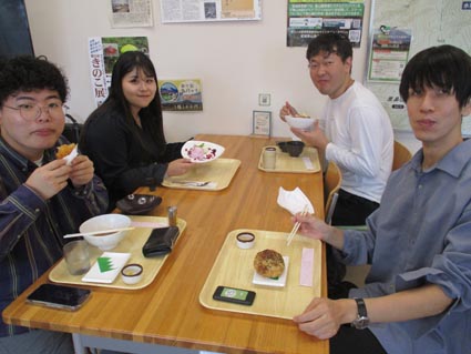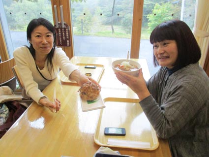| 館内には素敵な喫茶コーナーもあり,メニューもなかなかの充実ぶりです。終演後は,人気メニューのパンケーキ,焼きおにぎり,豚汁などをいただいてマッタリと過ごさせていただきました。雨の泉ヶ岳もなかなかいいですね。 | ||