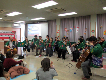 | 0歳からのコンサート。お母さんたちに抱っこされて,一緒に音楽を楽しんでくださいました。 | ||